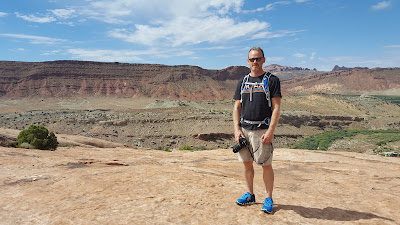 Stopping to breathe while hiking to Delicate Arch.